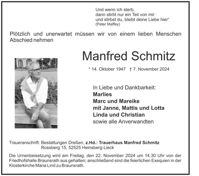 Urnenbeisetzung ab Friedhofshalle Braunsrath mit anschl. Exequien in der Klosterkirche Maria Lind